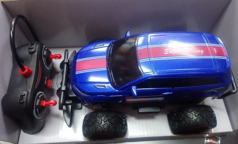 Auto terenowe RC - Big Food. Długość ok. 21cm. Jeździ w przód, tył, skręca w prawo, lewo, podświetlane koła. Model plastikowy. Działa na baterie 4x1,5V, do pilota 2x1,5V nie załączone. Częstotliwość 27 MHz Od lat 3