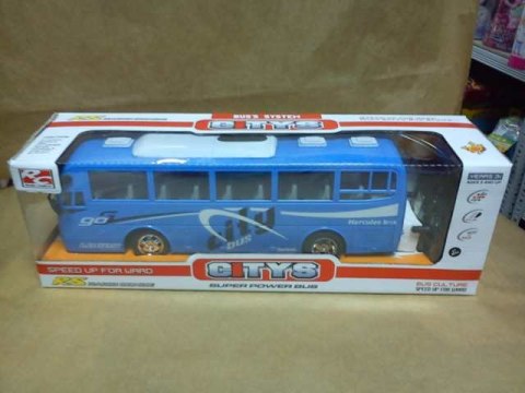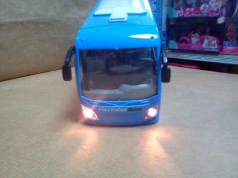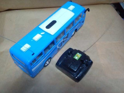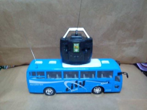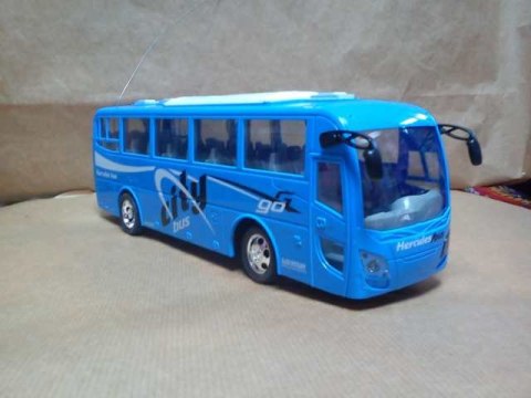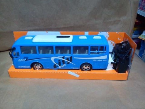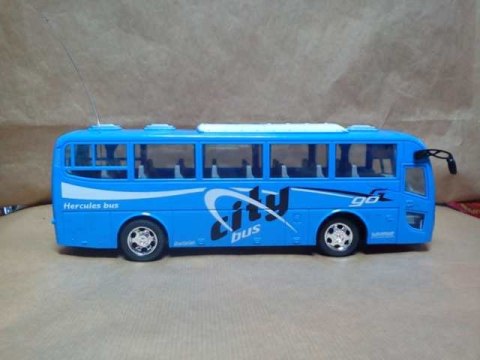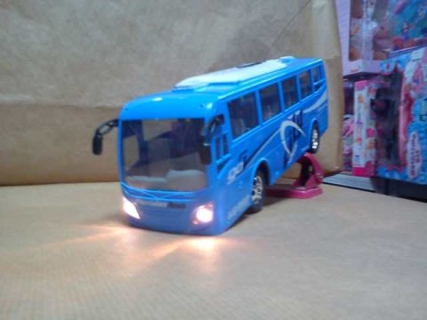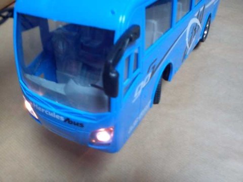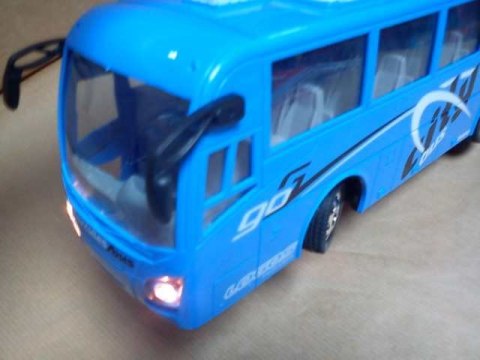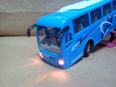 Autokar turystyczny sterowany pilotem radiowym. Autokar jeździ w przód, tył, skręca we wszystkich kierunkach. Posiada światła przednie.