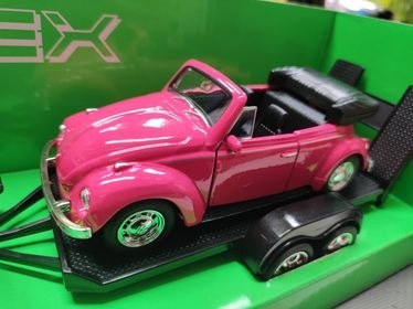 Autokolekcja Welly - Volkswagen Bus z przyczepą i autem Volkswagen Beetle Modele metalowe z plastikowymi elementami Długość całkowita razem z przyczepą około 27cm Autka idealne do kolekcjonowania Wiek 3+