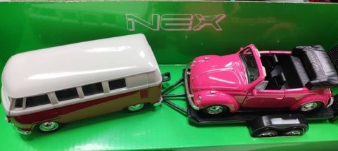 Autokolekcja Welly - Volkswagen Bus z przyczepą i autem Volkswagen Beetle