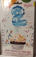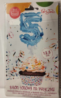 BALON FOLIOWY CYFRA NA TORT, BABECZKĘ NIEBIESKI 12,5cm NA PATYCZKU