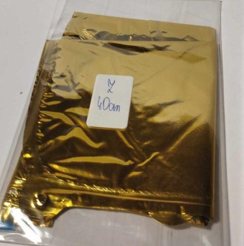 Balony foliowe złote, litera średnia wys. 40cm. Balony pompowane powietrzem przez załączoną słomkę. Nie unoszą się po napompowaniu helem. W sklepie posiadamy taśmy taśma do balonów oraz podklejki podklejki do balonów, dzięki którym balony można zamocować tak, jakby były nadmuchane helem.