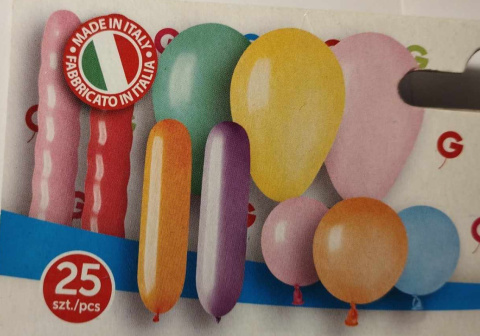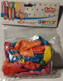 Gemar - balony lateksowe mix kształtów i kolorów W zestawie 25 balonów. Balony do pompowania powietrzem, należy pompować pompką. Nie ma informacji, co do pompowania helem.  W sklepie posiadamy taśmy taśma do balonów  oraz podklejki podklejki do balonów, dzięki którym balony można zamocować tak, jakby były nadmuchane helem.