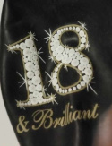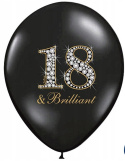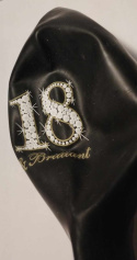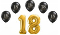 Zestaw balonów na 18-tkę. Zawiera: balon na hel 32``- 81cm "1" i "8", 5 czarnych balonów z napisem "18" oraz 10 czarnych balonów.
