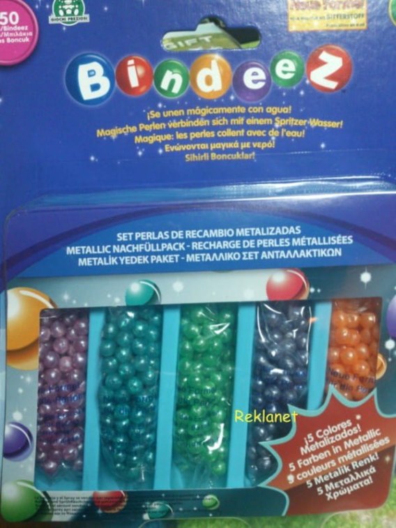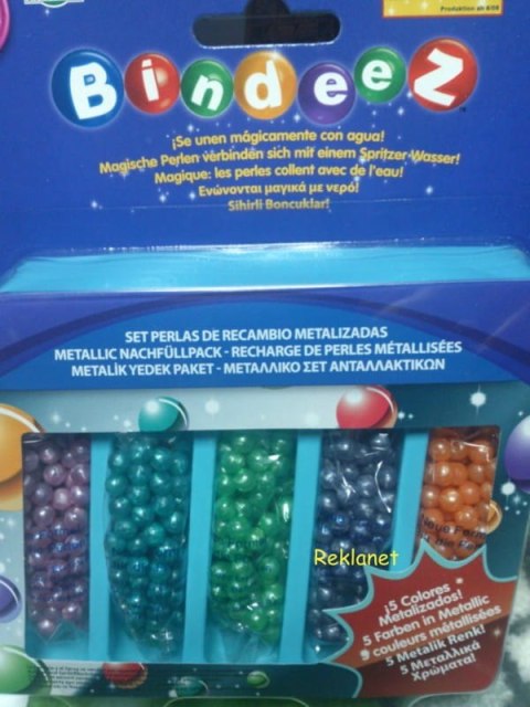 Kreatywne koraliki Bindeez zestaw uzupełniający, pozwalają tworzyć dowolne obrazki. Zestaw zawiera 750 sztuk koralików w 5 kolorach metallic. Od lat 4.