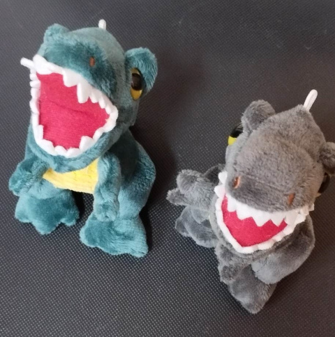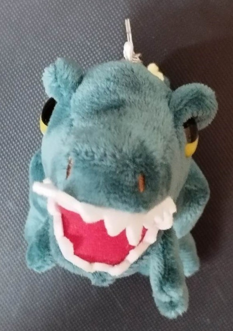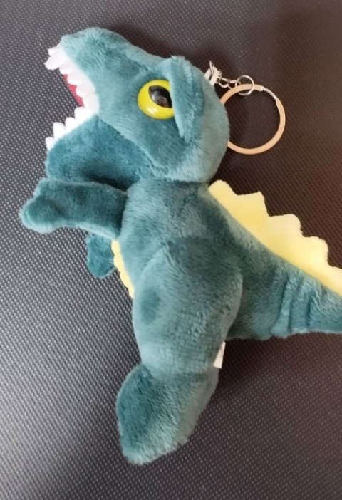 Śliczny, milutki Dinuś z otwartą paszczą. Breloczek. Wysokość maskotki 15 cm.