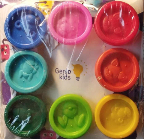 Zestaw 8 kubeczków z masą. Wieczka można wykorzystać jako foremki.