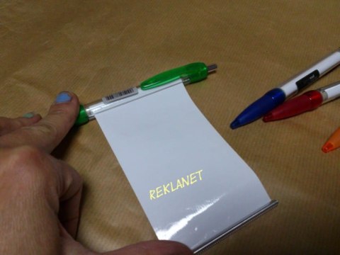 Kolor - tylko żółty! Długopis posiada zwijaną ściągę. Przydatny wszędzie tam, gdzie musimy mieć ze sobą jakieś zapiski.