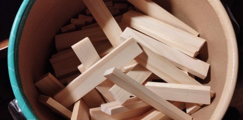 200 niemalowanych klocków drewnianych w wygodnym wiaderku.Wymiar klocka 10x0,8x0,5cm.