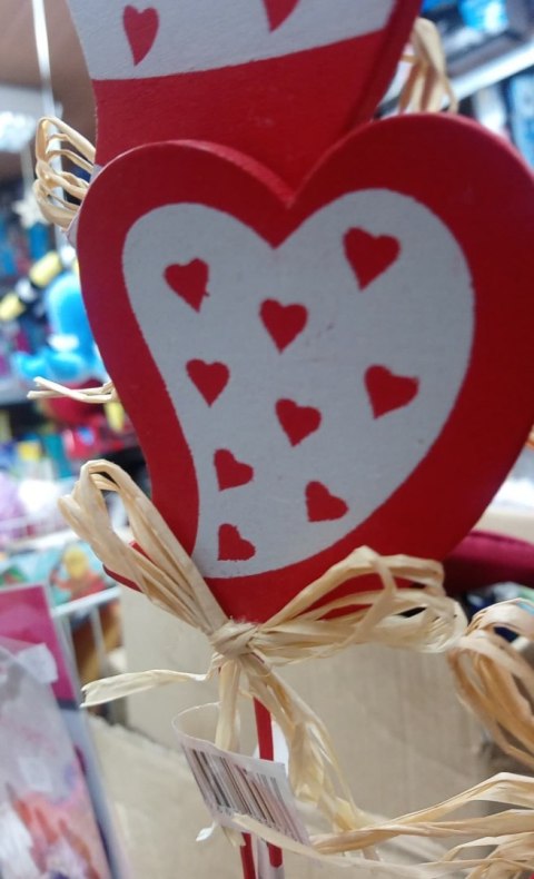 Drewniane serduszko na piku. Idealne, jako dodatek do prezentu lub dekoracji walentynkowej.