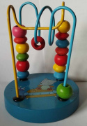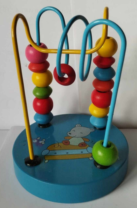 Drewniany labirynt edukacyjny rozwija u dzieci sprawność manualną, wyobraźnię przestrzenną oraz koordynację wzrokowo-ruchową. Zabawka posiada drewnianą podstawkę i kolorowe klocki do przesuwania oraz metalowy labirynt, po którym należy przesuwać klocki. Zabawka wykonana estetycznie i ciekawie, może posłużyć do nauki kształtów i kolorów. Jest całkowicie bezpieczna, ponieważ nie posiada oddzielnych elementów oraz ostrych kantów. Wymiary zabawki średnica opk.10cm, wys. 12cm. Dla dzieci od 36 miesiąca życia.