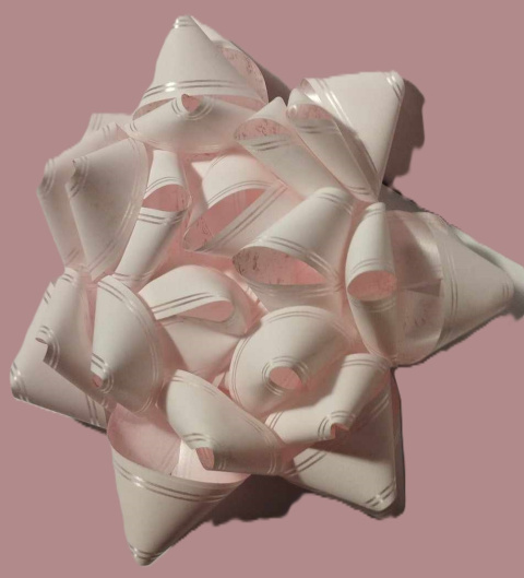 Kokarda prezentowa - rozetka do naklejenia na prezent. Średnica 20cm. Wykonana z różowej pastelowej wstążki.
