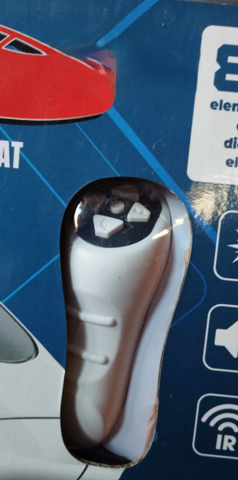 Działa na baterie paluszki zwyukłe - 3 do kolejki + 2 do pilota, nie załączone.