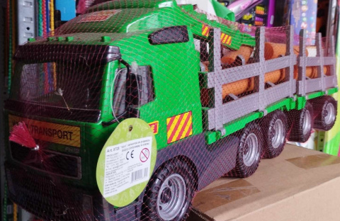 Mega duże auto Volvo. Samochód dłużyca do przewozu drzewa. W zestawie bale drzewa. Dł. zestawu 74cm. 3+