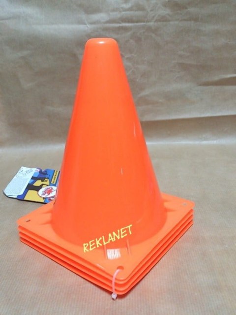 Pachołki manewrowe. Przydatne do nauki jazdy, slalomu, gry w piłkę nożną i wielu innych. Wysokość pachołka 18cm, wymiar u podstawy 13 x 13cm. W zestawie 4 pachołki. Cena dotyczy 1 zestawu.