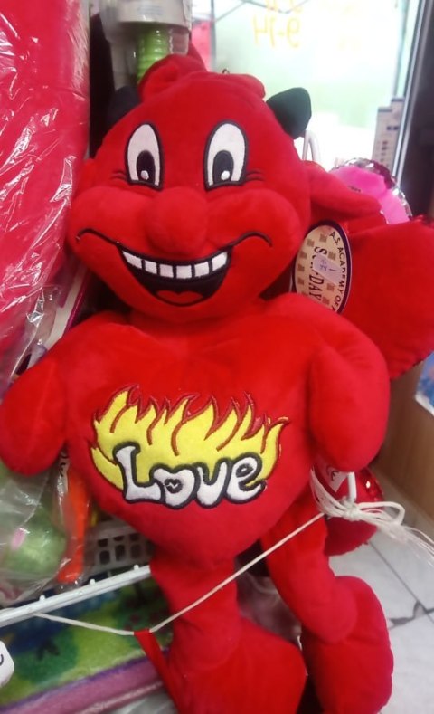 Duży, pluszowy diabełek z napisem "Love" na Walentynki. Wykonany z mięciutkiego, milutkiego pluszu. Idealny na zabawny walentynkowy prezent. Wysokość 50cm. B/o