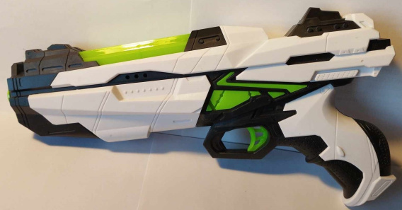 Duży pistolet kosmiczny na baterie ze światłem i dźwiękiem. Długość 30cm. Działa na baterie, paluszki zwykłe, nie załączone. Od lat 3