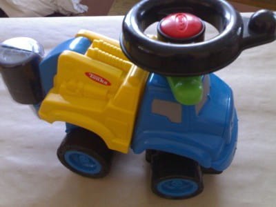 Autko przystosowane do małych rączek, posiada wygodne do łapania i podnoszenia kształty. Zabawka bardzo pomaga w rozwoju zdolności manualnych dziecka, ćwiczy palce i rączki poprzez zmuszanie do szerokiego otwierania dłoni.