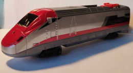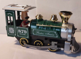 Kolejka Tomek w wersji torów z estakadą. Kolejka jedzie po torze wznoszącym się na estakadę i opadającym na nasyp. Długość parowozu 12cm, wys. 5cm. Dla dzieci od 3 lat.