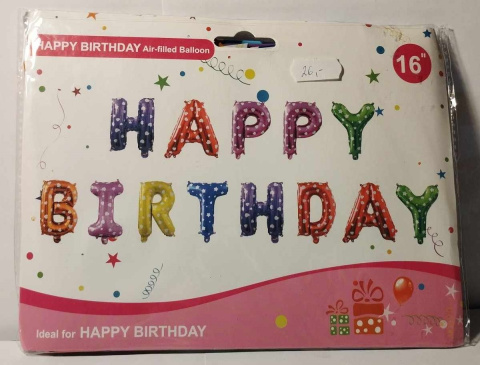 GIRLANDA URODZINOWA NAPIS HAPPY BRITHDAY POMPOWANE BALONY FOLIOWE 16``