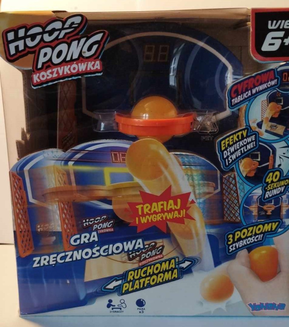 Elektorniczna gra koszykówka, gra zręcznościowa. Każde trafienie to punkty. 3 poziomy szybkości. Gra zawiera cyfrową tablicę wyników, ruchomą platformę oraz 3 piłeczki. Gra działa na baterie 3 paluszki zwykłe (nie załączone). Liczba graczy: 2, wiek 6+