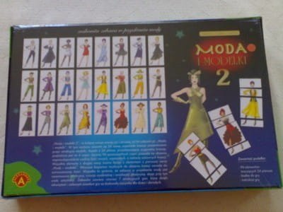 Nowa wersja znanej już i cenionej układanki "Mody i modelki". Zawiera mnóstwo nowych, niepowtarzalnych wzorów, przez co zabawa jest jeszcze bardziej ciekawa i atrakcyjna. Zestaw zawiera 24 plansze z modelkami, z których każda podzielona jest na cztery części. Wszystkie elementy tej wersji można łączyć z elementami z pierwszej wersji. Zabawka zawiera również 7 atrakcyjnych gier, które dzięki rekwizytom i ciekawym zasadami gry są doskonałą rozrywką dla dzieci i dorosłych.