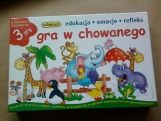 Gra w chowanego to zestaw 3 gier ćwiczących spostrzegawczość. Dziecko musi odgadnąć gdzie schowała się małpka, czy świnka. Gry ćwiczą refleks, wyrabiają zdolność analizowania barw i kształtów, uczy umiejętności właściwych relacji społecznych.