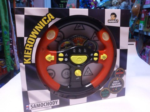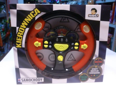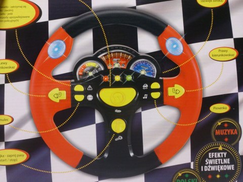 Grająca kierownica dla małego kierowcy. Posiada stacyjkę, migacze, klakson i inne dźwięki. Polski głos.