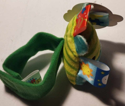 Mięciutka, milutka w dotyku grzechotka hipcio na pasku zapinanym na rzep. Grzechoitkę można przypiąć dziecku na nóżkę lub rączkę. Grzechotka posiada również wypustki, które dziecko może ssać.