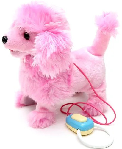 Interaktywny piesek pudel na miękkiej smyczy. Piesek chodzi, szczeka, merda ogonkiem, zatrzymuje się.