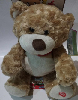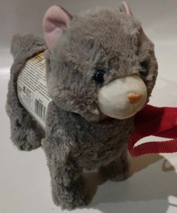 Śliczny, interaktywny kotek, na sztywnej smyczy. Kotek chodzi i tańczy w rytm melodii, a także miauczy. Długość pieska 30cm, wys. 25. Działa na baterie 3 paluszki zwykłe, załączone. Zobacz film Od lat 3