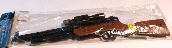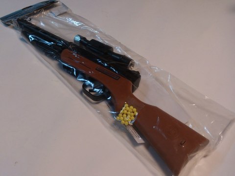 Karabin na kulki plastikowe. Zabawka plastikowa, dł. 60 cm. W zestawie kulki. Od lat 3 Dedykowane dzieciom starszym lub zabawa pod nadzorem dorosłych. Nie wolno strzelać do ludzi i zwierząt!
