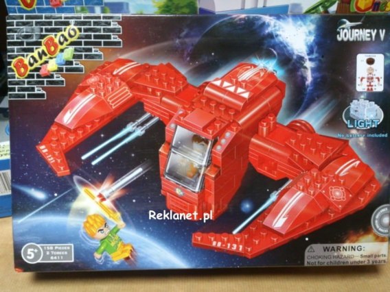 Klocki BanBao to nowa, rewelacyjna seria klocków, kompatybilnych z klockami takimi jak Lego, Sluban, Ligao itp. Wymiary opakowania: 28 x 19 x 5,5cm.. Zestaw zawiera 158 elem, z których można ułożyć statek kosmiczny. Od lat 5.