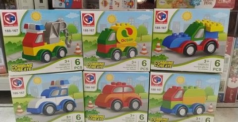 Zestaw klocków 6 elementów dla najmłodszych - różne pojazdy