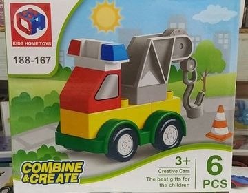 Zestaw klocków 6 elementów dla najmłodszych - różne pojazdy Duże elementy, proste w składaniu Wiek 3+