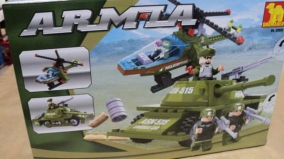 Zestaw składa się z 253 elementów, z których można ułożyć czołg, helikopter oraz żołnierzy.