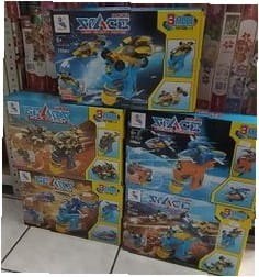 Zestaw klocków konstrukcyjnych z możliwością robienia baniek mydlanych - zestaw można złożyć na 3 sposoby pokazane na zdjęciu - po złożeniu w formę pistoletu uzyskujemy możliwość robienia baniek mydlanych - odpowiednie dla dzieci w wieku 6+