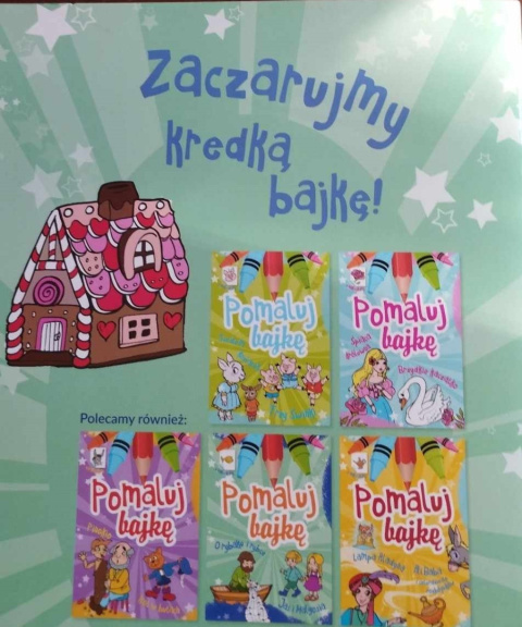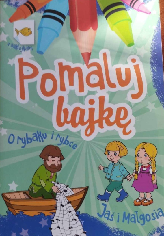 Kolorowanka Pomaluj bajkę. Zawiera nakleji oraz 2 bajki - O rybaku i Złotej Rybce oraz Jaś i Małgosia. Zawiera również treści do czytania.
