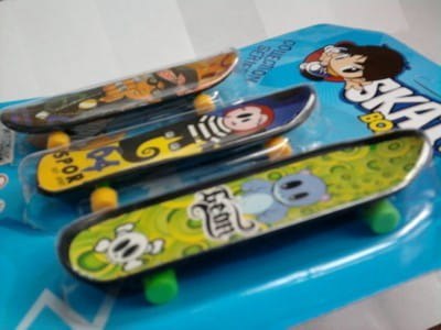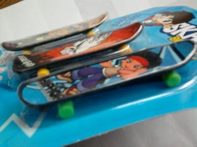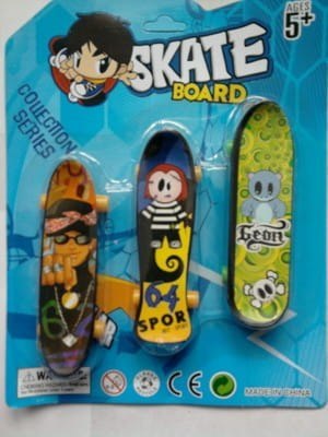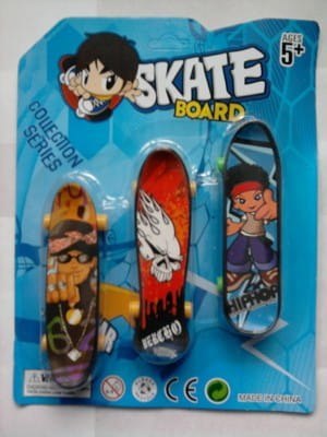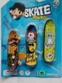 Komplet 3 deskorolek, modelowe wykonanie. Dł. każdej deski 9,5cm. Wzory wysyłamy losowo. Dla dzieci od 3 lat.