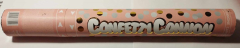 Armata strzelająca błyszczącymi kółkami. Konfetti imitujące lśniący deszcz. Armatka działa na zasadzie sprężonego powietrza, nie jest fajerwerkiem. Strzela na wysokośc 5-8 metrów. Długość tuby 40cm. Nie celować w stronę ludzi i zwierząt.