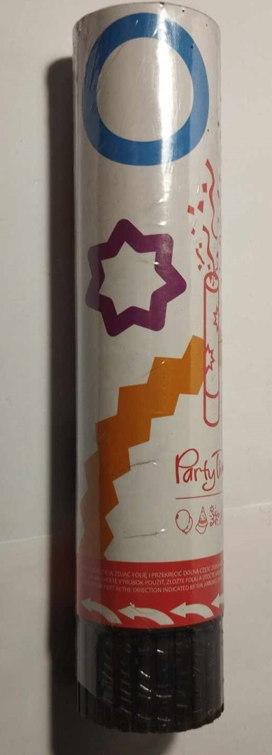 Armata strzelająca kolorowymi papierkami w różnych kształtach. Konfetti kolorowe. Armatka działa na zasadzie sprężonego powietrza, nie jest fajerwerkiem. Strzela na wysokośc 2-3 metrów. Długość tuby 20cm. Nie celować w stronę ludzi i zwierząt.