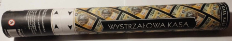 Armata strzelająca kasą. Konfetti imitujące banknoty. Armatka działa na zasadzie sprężonego powietrza, nie jest fajerwerkiem. Strzela na wysokośc 5-8 metrów. Długość tuby 40cm. Nie celować w stronę ludzi i zwierząt.