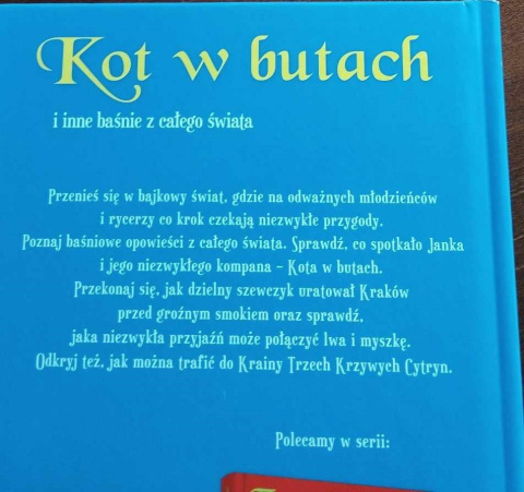 Piękne wydanie baśni z całego świata. Księga zawiera m.in. takie baśnie, jak: Kot w butach, O smoku Wawelskim, Lew i mysz, Szczęście Kadyra, Kraina Trzech Krzywych Cytryn oraz Warszawska Syrenka. Kartki kredowe, piękne ilustracje, twarda oprawa, 47 stron.
