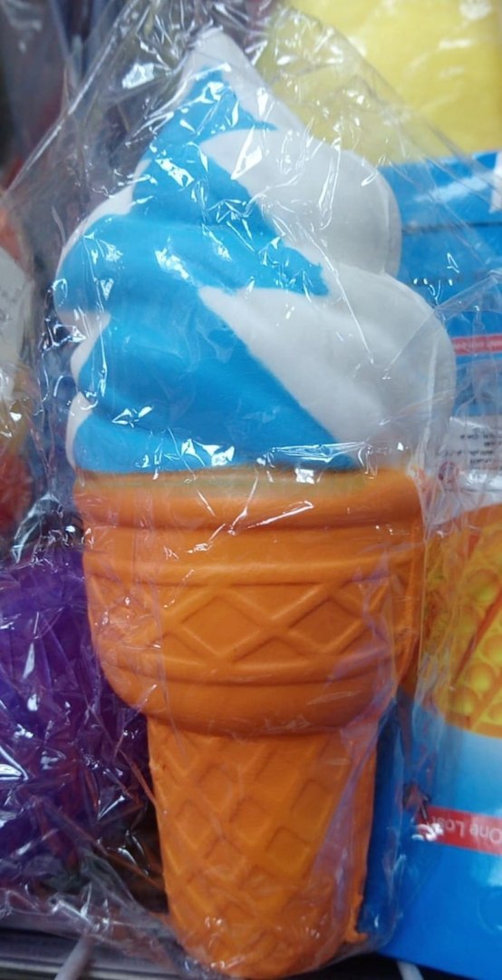 Zabawny gniotek - lód w wafelku, którego można zgniatać do woli - zawsze wróci do swojego pierwotnego kształtu. Zabawka antystresowa, uspokajająca. Wysokość ok.16cm.
