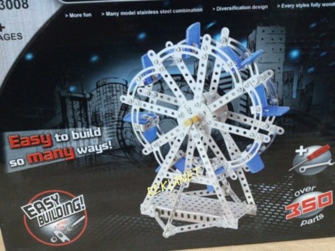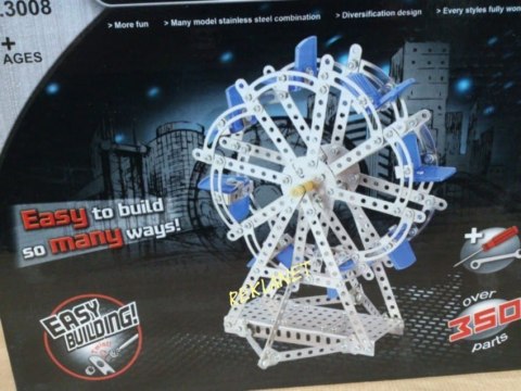 Mały konstruktor - zestaw ponad 350 metalowych elementów, z których można skonstruować Diabelski Młyn. W zestawie elementy konstrukcyjne, śrubki oraz potrzebne narzędzia. Od lat 6.