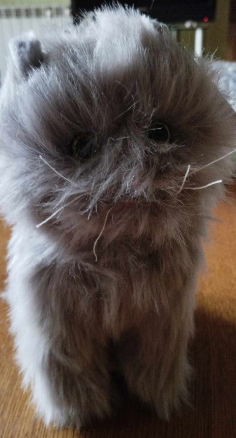 MASKOTKA KOTEK. SIEDZĄCY KOT SZARY 25cm.