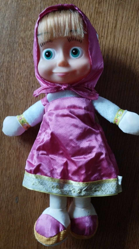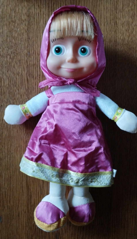 Lalka Masza w 2 opcjach - z dźwiękiem i bez dźwięku. Lalka jest w środku miękka, z materiału. Posiada silikonową głowę. Wysokość 27cm.. Od lat 3