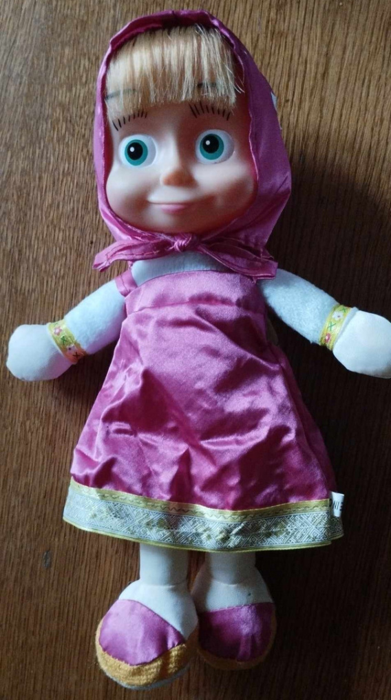 Lalka Masza w 2 opcjach - z dźwiękiem i bez dźwięku. Lalka jest w środku miękka, z materiału. Posiada silikonową głowę. Wysokość 27cm.