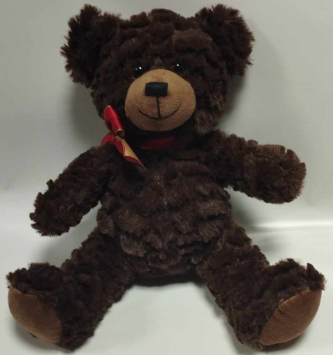Miś pluszowy z kokardką - niezwykle miły w dotyku. Wysokość maskotki 35cm