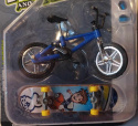 Mini model roweru i deskorolki na palec. Długośc roweru 10cm, deskoroli 9cm.